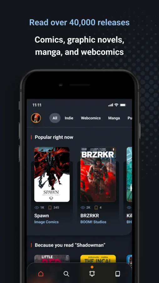 The next generation comics platform is here! Browse over 45,000 releases from publishers like BOOM!, Image, and Top Cow alongside exciting independent comics, manga, and webcomics.