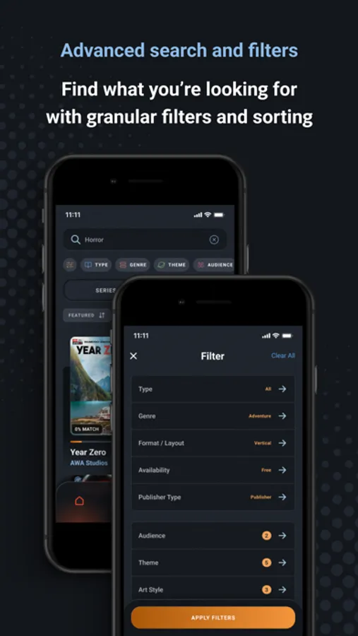 Find exactly what you’re by looking for by filtering across genres, themes, art styles, formats, audiences, and more. If you know what you’re into, you can search for it.