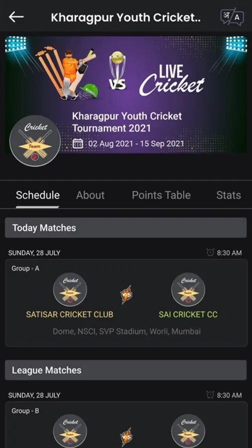 1. Tournament organizers can create and manage the entire cricket league online, Share the tournament page and get more viewers for the tournament. Forget computing stats manually, we calculate them for you automatically. Top performers of the league are updated after every match, points table (standings), and schedule is always handy for the audience.