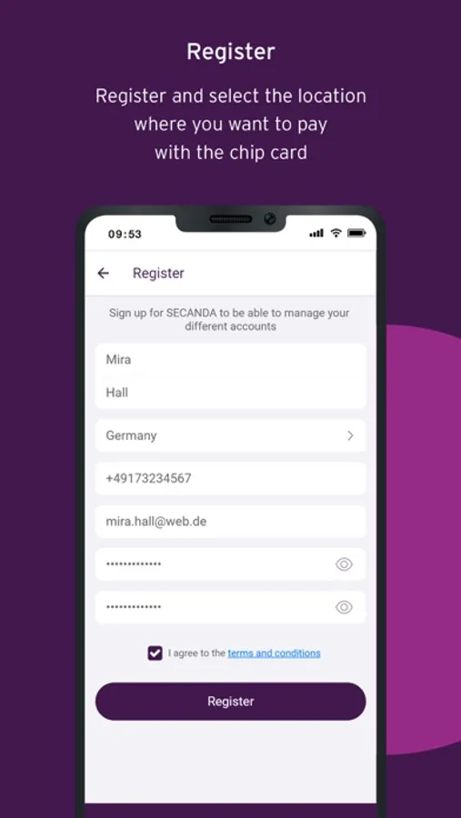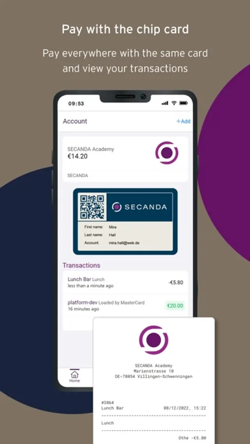 The SECANDA app turns your smart card into the next generation payment card. Simply download the app and register with your email address.