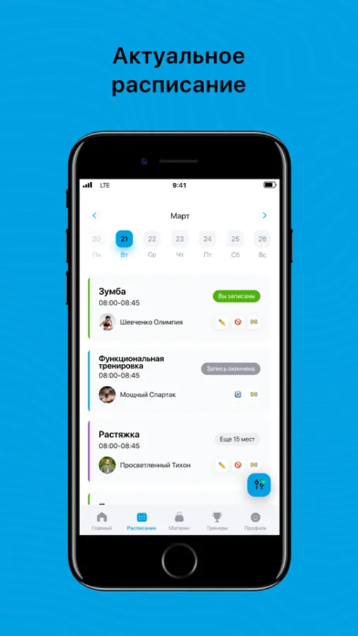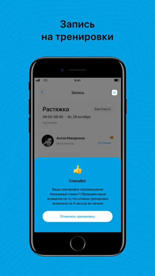 Получать PUSH-уведомления о предстоящих занятиях и мероприятиях студии;