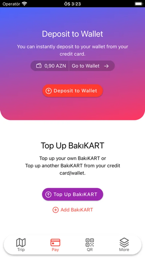 Ödəniş funksiyası ilə elektron pul kisənizə dərhal bank kartından pul yükləyə və istənilən BakıKART-ın balansını pul kisənizdən artıra bilərsiniz. Bundan başqa, həyata keçirilən bütün əməliyyatların tarixçəsini izləyə bilərsiniz.