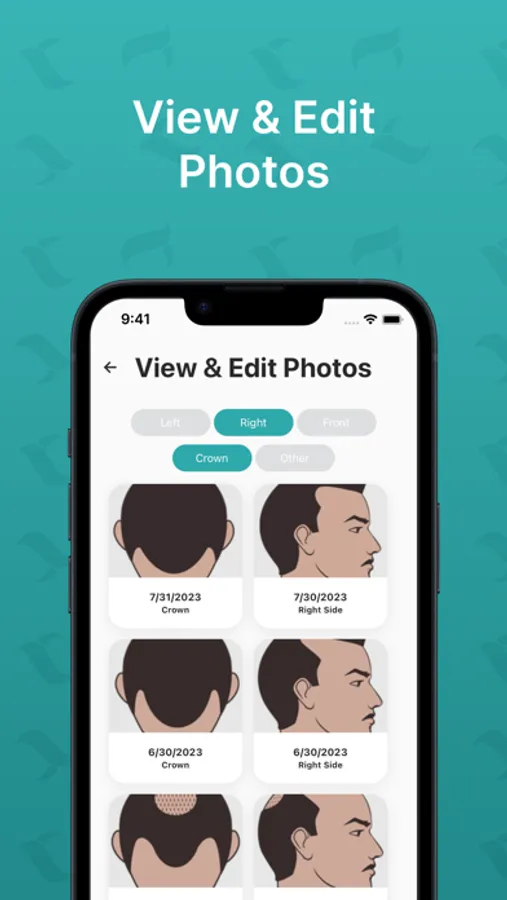 Upload Photos: Easily upload photos of your hair tagged with various angles - left, right, crown, and more.