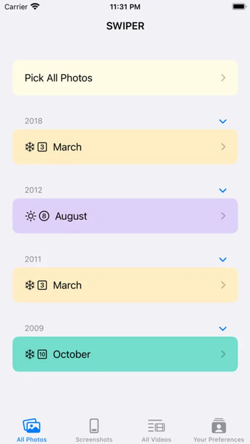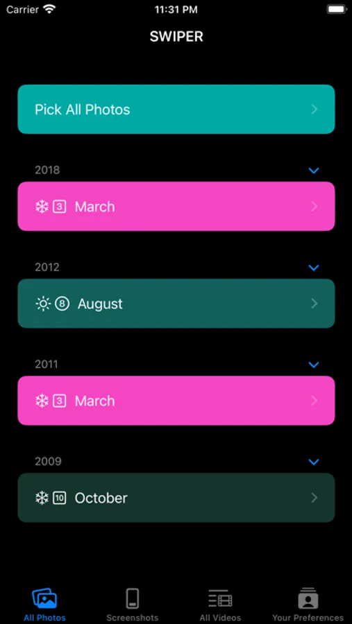 You can start scrolling hundreds of photos on your phone with Swiper. To make more organise in your photo gallery more, view your photos in a month or all views, swipe the photos you want to delete to the left, and swipe the beautiful photos you want to keep to the right. You can only clear screenshots if you wish by seeing your photos in the all and screenshots view.