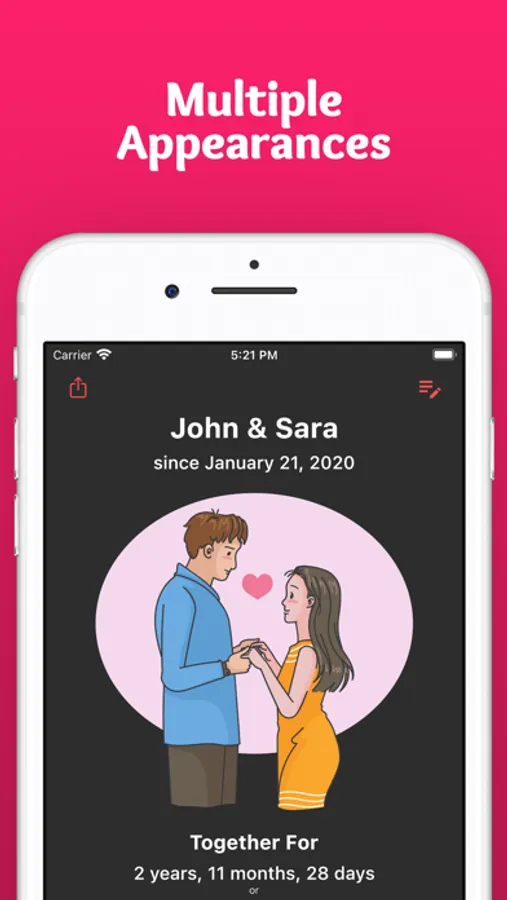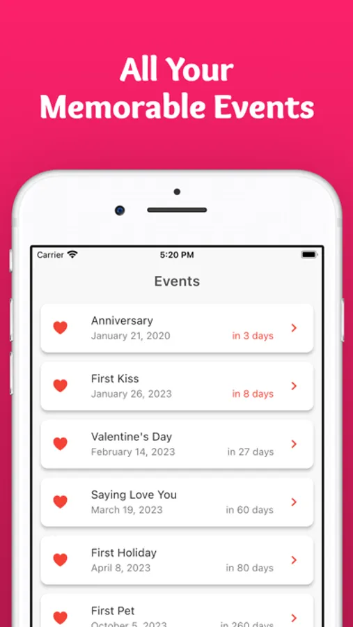 Easily add anniversaries, birthdays and other personal events like your first kiss and receive reminders to ensure you never forget these special occasions.