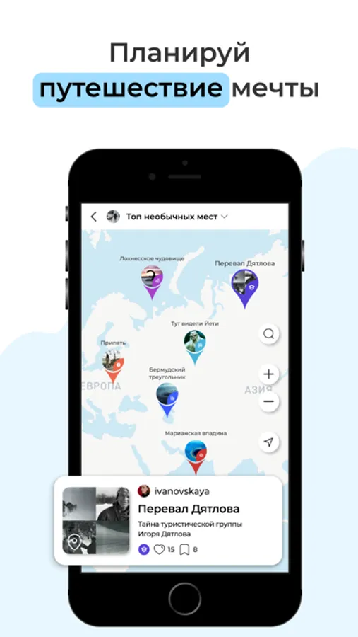 Ставьте лайки, подписывайтесь на популярных пользователей Planet for me, создавайте свои карты интересных мест и событий. Ваша Планета — ваши правила!