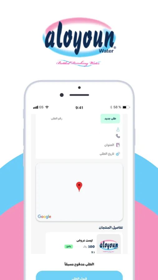هو تطبيق خاص بمناديب شركة العيون للمياه، يمكن من خلال قيام المندوب بالاطلاع علي طلبات التوصيل الخاصة بالشركة والاطلاع علي تفاصيل الطلب و من ثم قبول طلب التوصيل و توصيله للمستخدم.