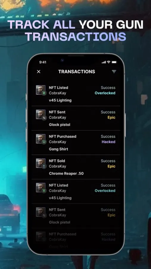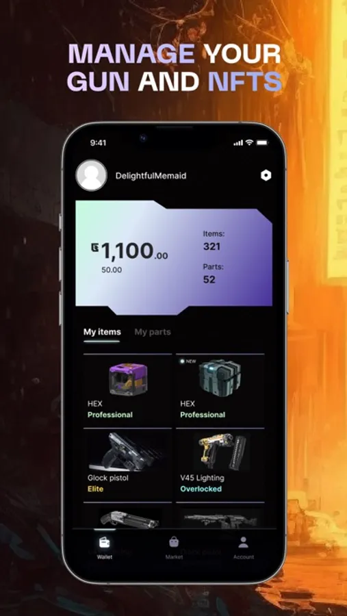 Show off your rarest and most valuable NFTs or expand your collection by trading with other players, all within the in-app GUNZ Marketplace!