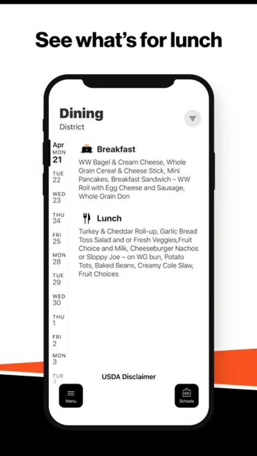 Within the dining section, you’ll find an easy to navigate, weekly menu, sorted by day and meal type.