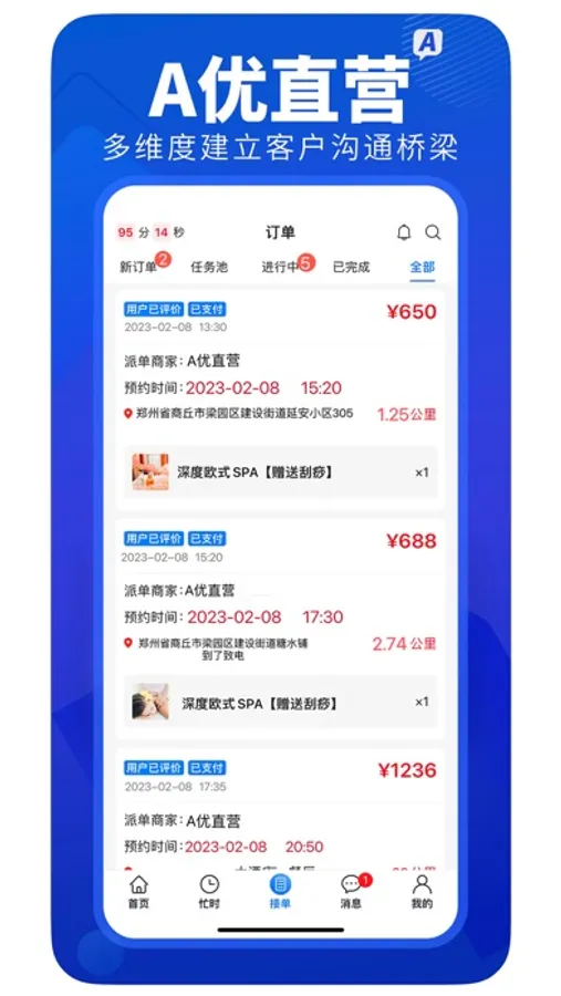 【A优众包】入驻后可实现选择项目信息、上线接单、订单流水、经营结算等全流程功能。