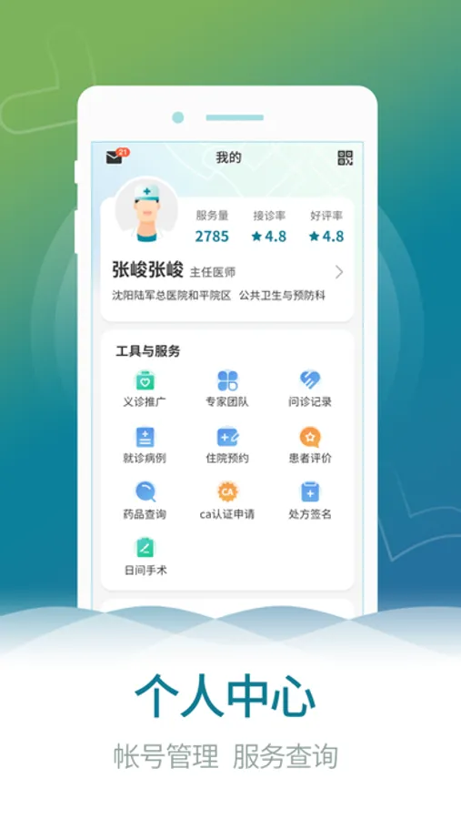 打造权威专、安全、专业的医疗和健康管理服务平台。在这里您可以寻找医院的知名医生进行在线问诊、团队问诊,以及专属健康档案管理,享受到专业的健康评估和健康指导等。