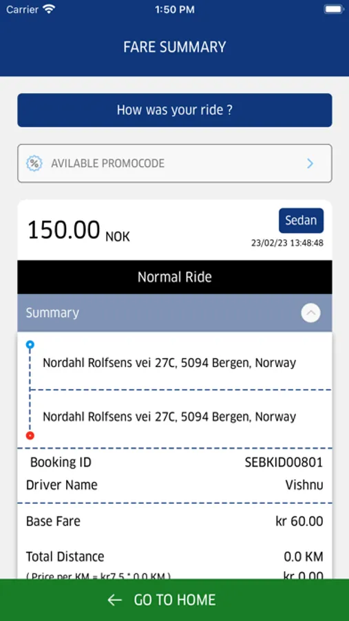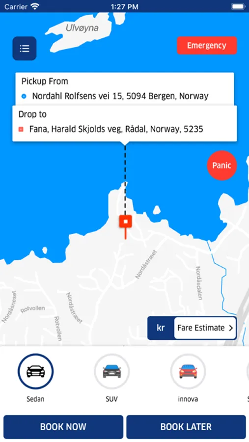 - Your current location is picked up automatically and add your destination to get a fare estimation