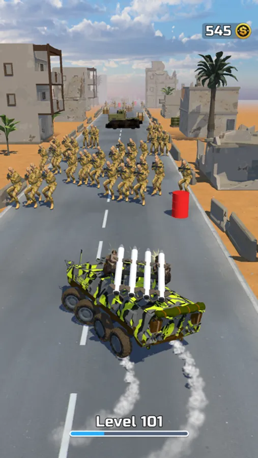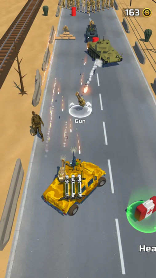 - Upgrade your weapons by breaking crates or destroying enemy vehicles.