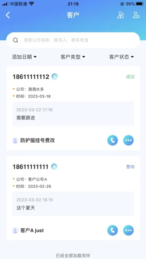 销易通是一款客户关系管理系统。通过它可以管理自已的客户,标记客户状态,添加跟进记录,录入订单等,可以有效降低客户流失率。