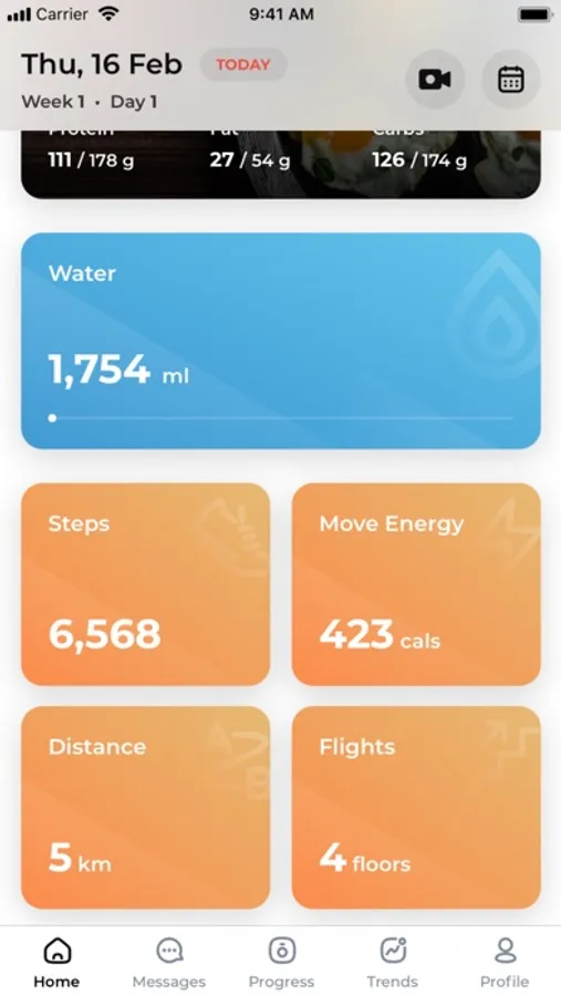 The app integrates with Apple Health to show your daily activity - distance, steps, active energy, and flights to help you better achieve your goals.
