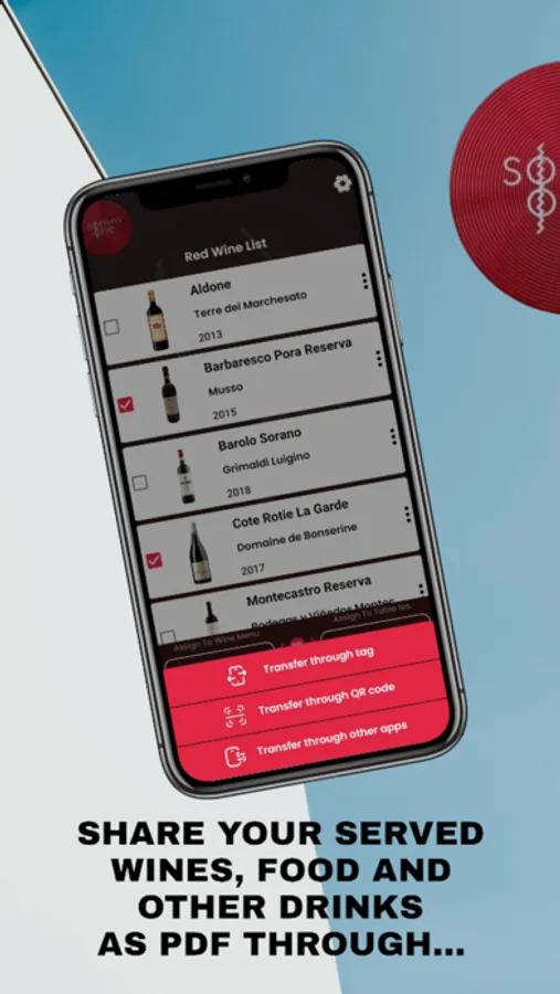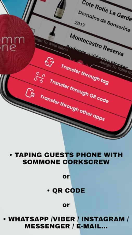 Sommone app lets sommeliers and winemakers share nice and clean digital information sheets of served wines, other drinks and food with the guests by touching their phone or by unique generated QR code or transferring the nice and clean information in many other frequently used social apps.