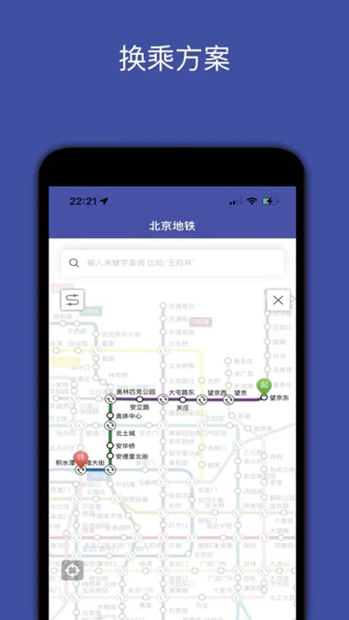 查看全国主要城市的地铁线路图和站点数据,支持设置起点和终点以后计算换乘方案。