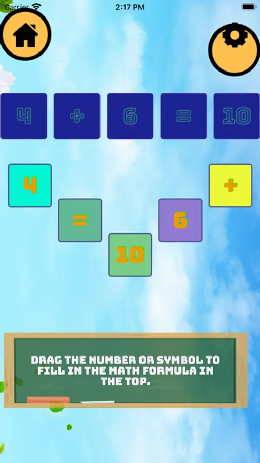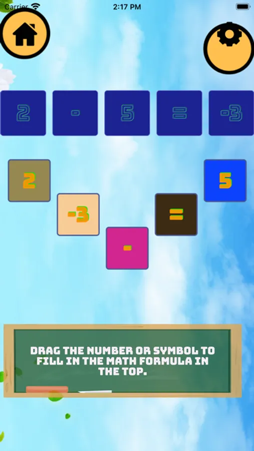 En matematisk formel øverst på skjermen, bør du dra tallet eller symbolet for å fylle ut den tapte matematiske formelen for å fullføre ligningen.