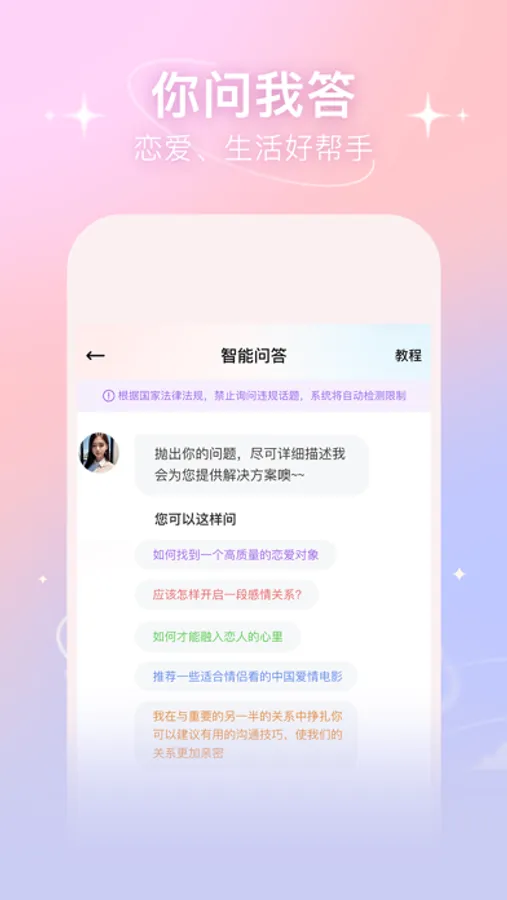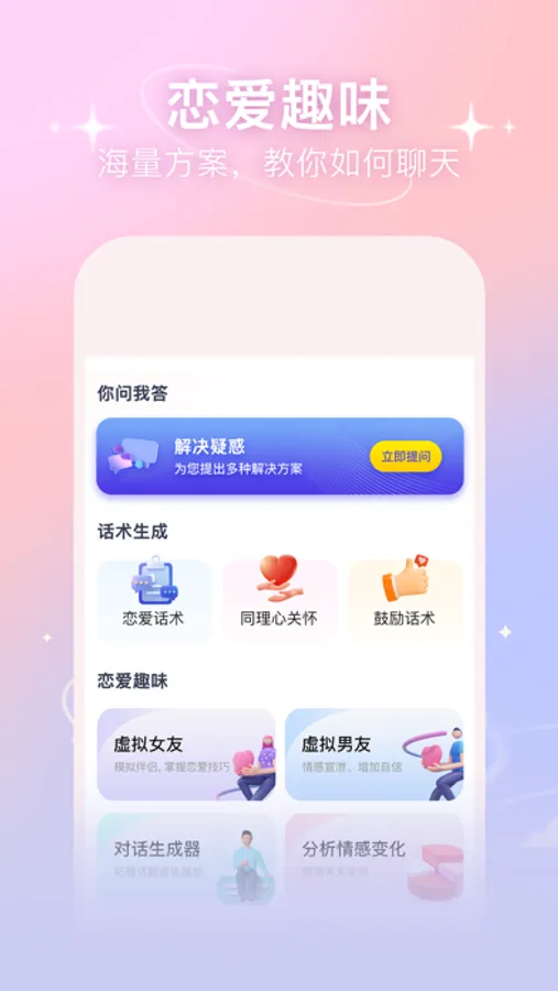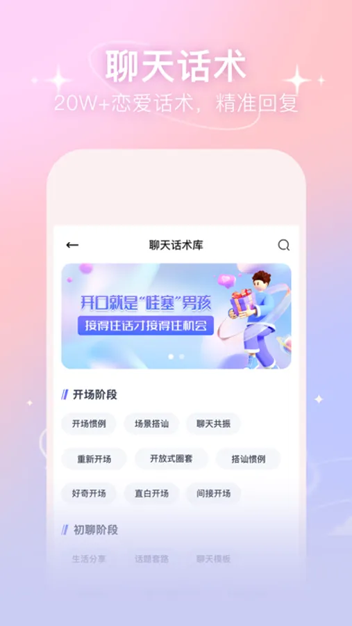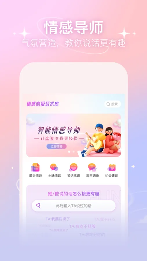 情感恋爱话术库是一款教您如何摆脱尬聊,提升高情商而生的聊天恋爱话术工具