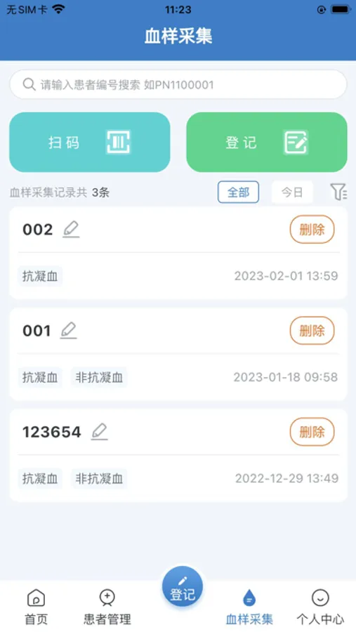 血样采集:实验室血样采集登记功能;