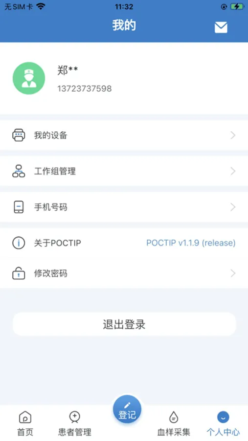个人中心:设备管理、工作组管理、手机号管理、修改密码管理;
