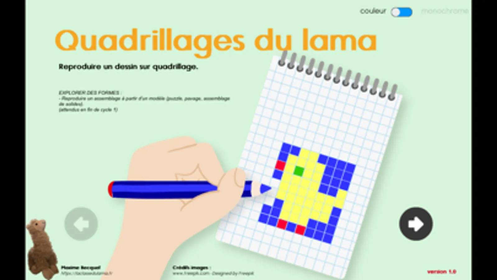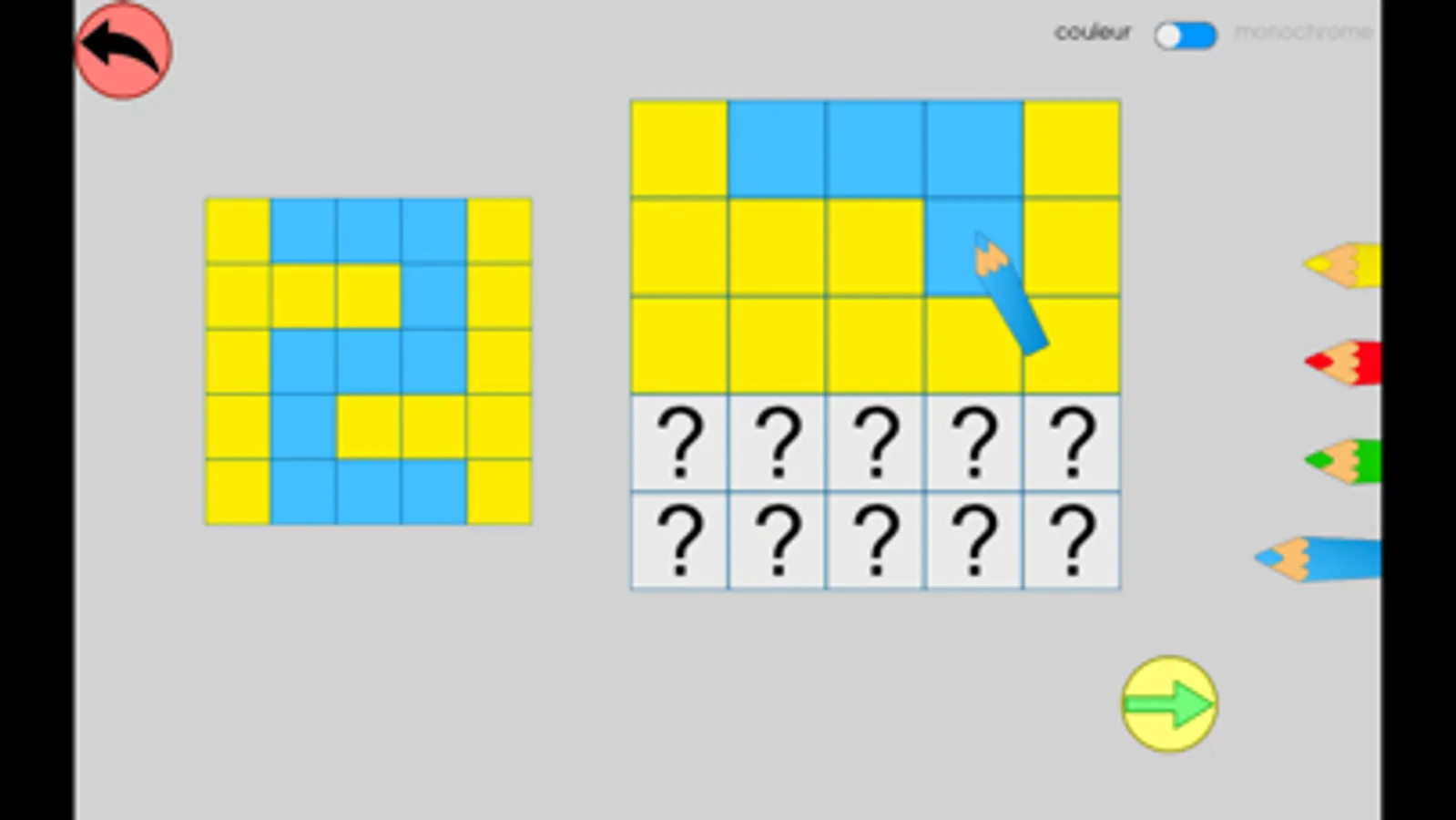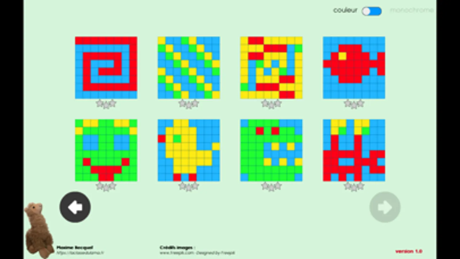 - 8 pavages sur 8x8 carreaux (jusqu’à 4 couleurs).