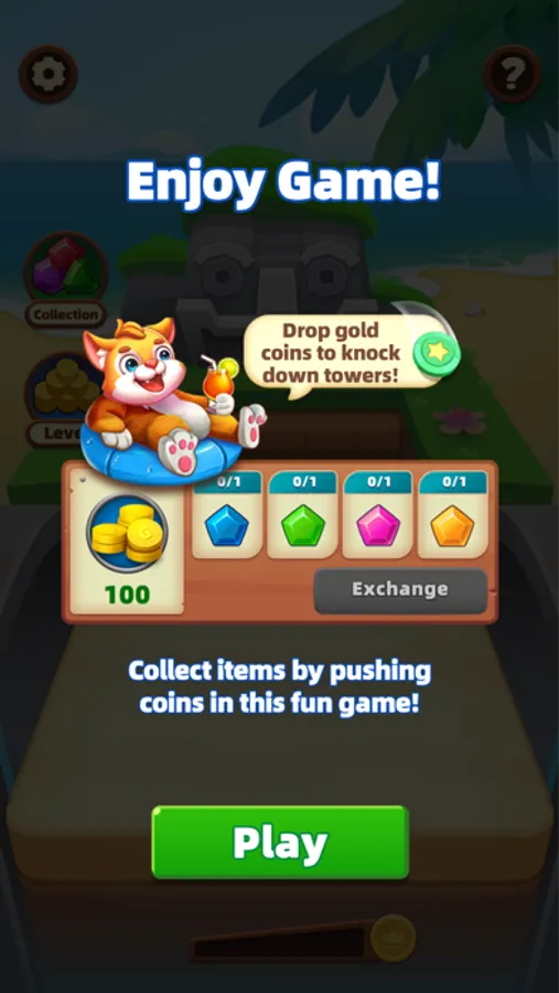 The first thing you need to do is click the coin area; once the slider is clicked, you'll watch your gold coins pile up until the tower is knocked down; accumulating points will unlock new levels for you!