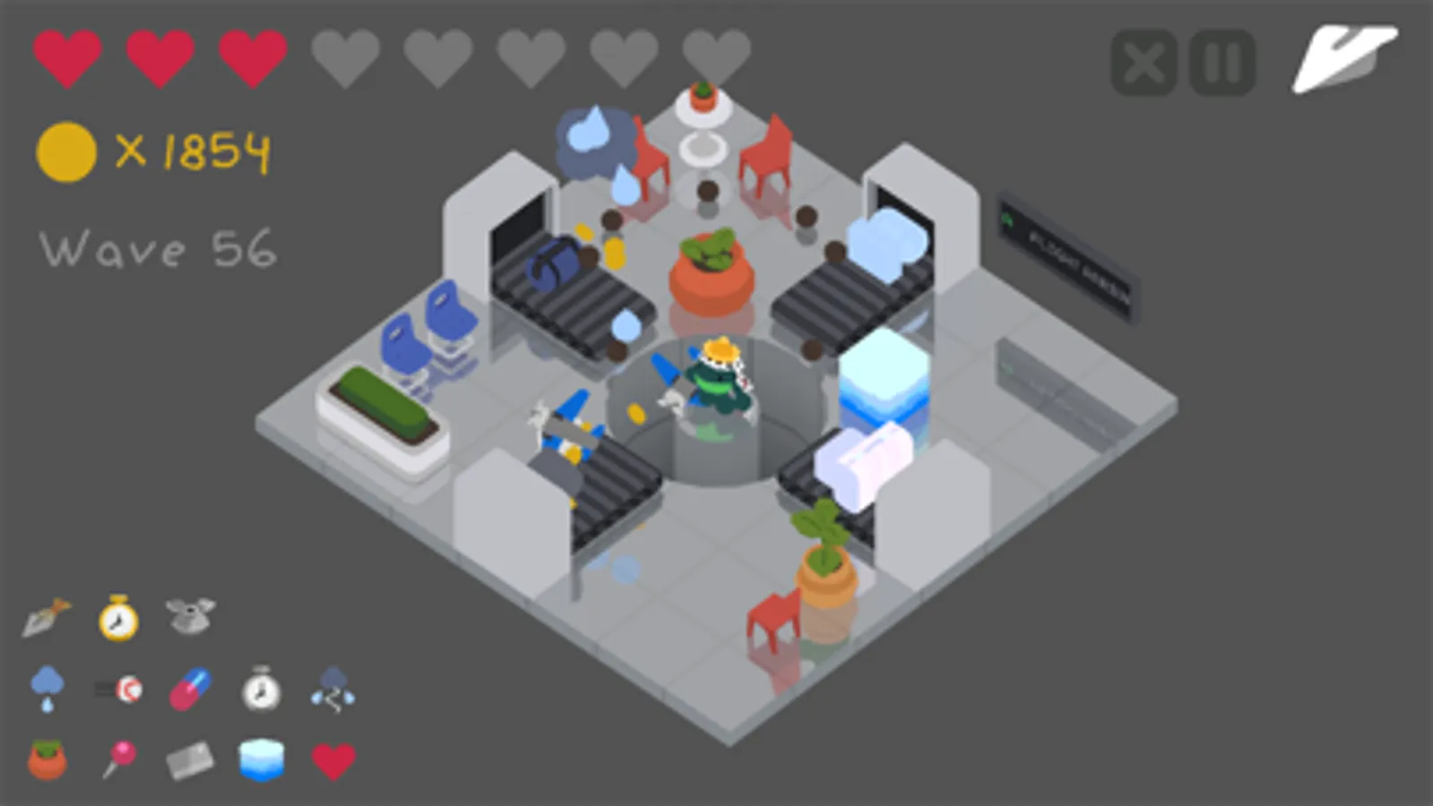 Play as a Frog, and don't let any luggage through! Buy upgrades in the shop, such as towers and health, to make it as far as you can! Discover secret interactions and interesting synergies, and earn Star Coins to get outfits and hats!