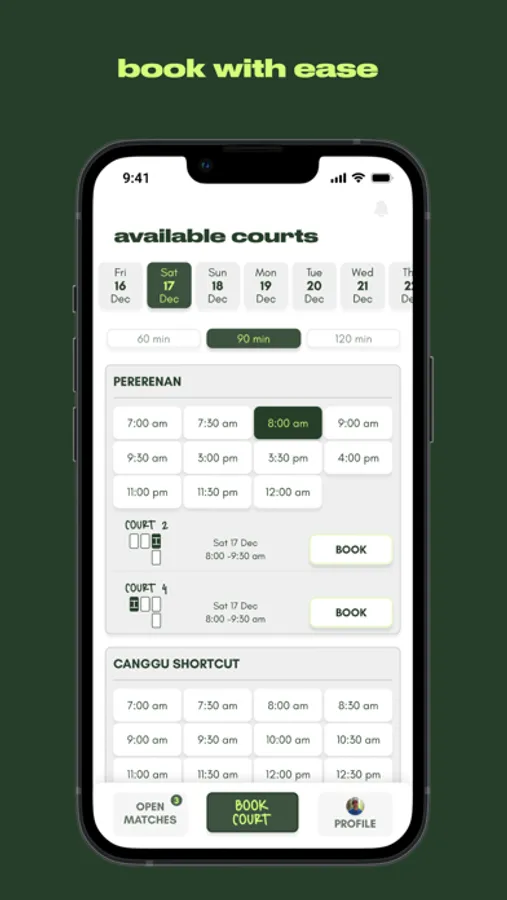 Our app's sleek design and user-friendly interface make it easy to navigate, and with just a few clicks, you can book a court. We also offer the option to join social matches, where you can meet new people and challenge yourself to improve your skills on the court. With Jungle Padel, you'll never have to worry about the hassle of finding a court or players to join your game again.