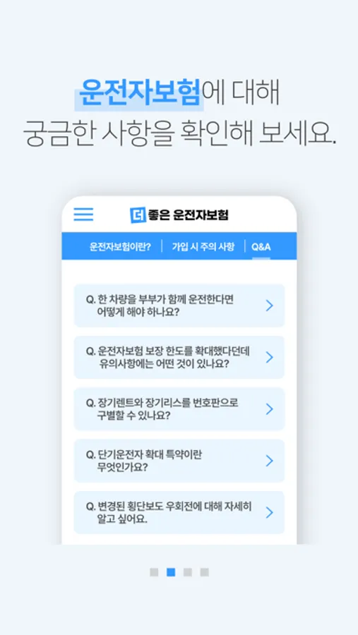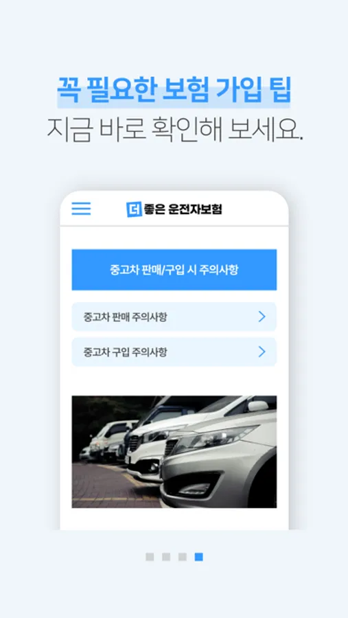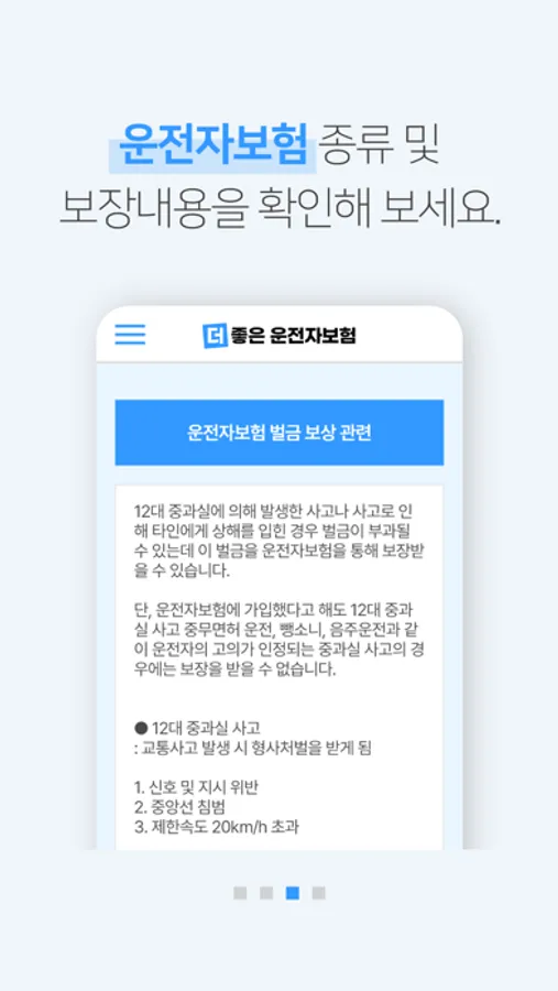 더 좋은 운전자보험 앱 하나로 쉽고 간편하게 운전자보험 실시간 가격 및 견적 비교! 가입 시 주의사항, 종류 및 보장, 관련 정보 등 다양하고 유용한 정보를 제공합니다.