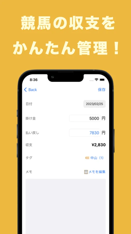 ・掛け金と払い戻しを入力するだけで、収支や回収率の管理ができる!