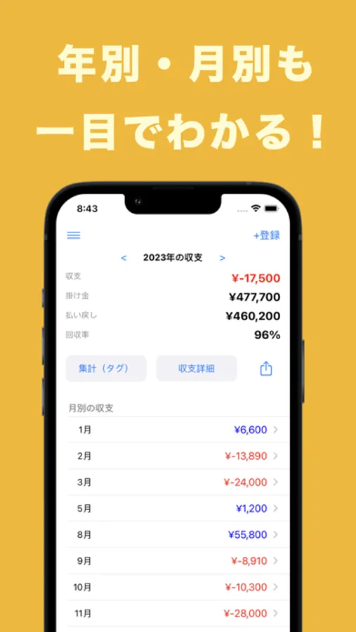 ・タグはカテゴリ別に分かれるから、タグごとの収支が比較できる!