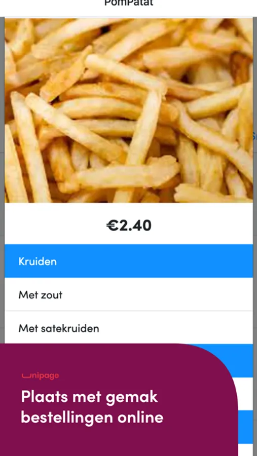 Probeer nu onze nieuwe app en ontdek hoe makkelijk en snel je je favoriete afhaalmaaltijden kan bestellen! Je kan al direct betalen en de vooruitgang volgen van je bestelling. Zo weet je precies wanneer je maaltijd klaar is om afgehaald te worden. Bon appétit!