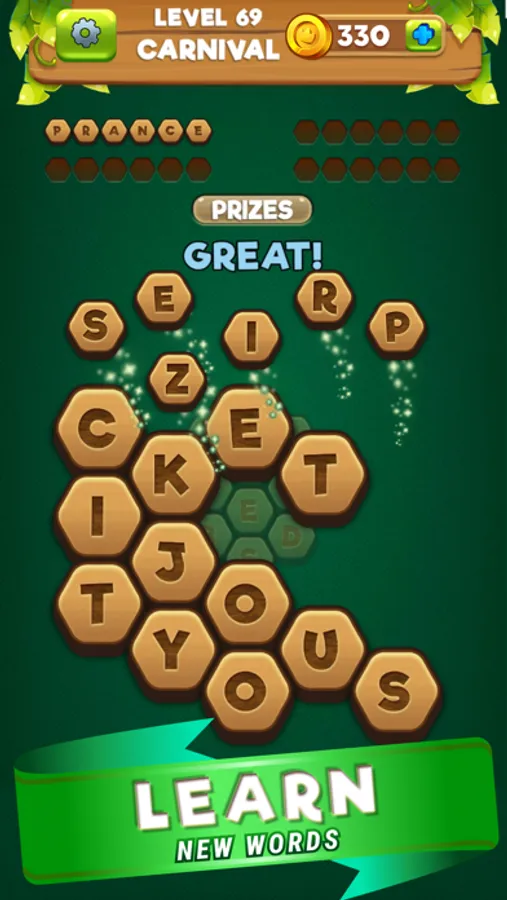 Find as many words as possible to unlock levels and earn extra bonus coins. Fill in every block with a word! Earn coins when you discover new levels.