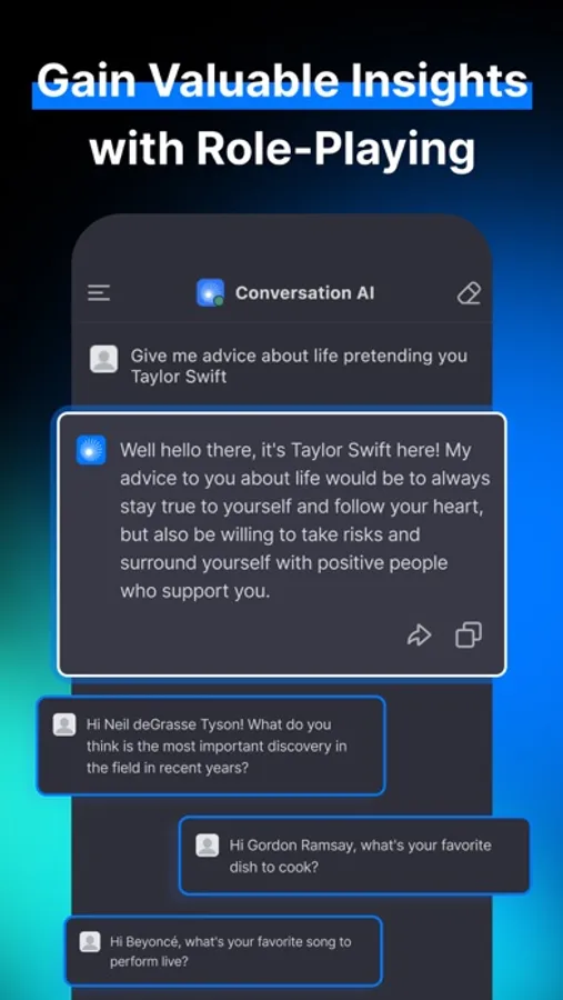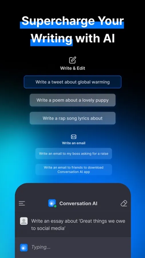 Conversation AI uses advanced machine learning technology to provide a human-like interaction with the chatbot assistant. Get all your questions answered in no time. Write anything according to your requirements. Explain complex theories in simple terms. Get creative with fiction writing, design projects, and even business presentations and marketing copies. Conversation AI is your best companion in every walk of life.