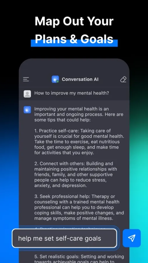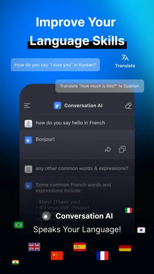 And the best part? Conversation AI is available to you whenever and wherever you need it. Whether you're at home, on the go, or in the office, our chatbot is always just a few taps away. So why wait? Download Conversation AI today and start enjoying the benefits of advanced AI technology!