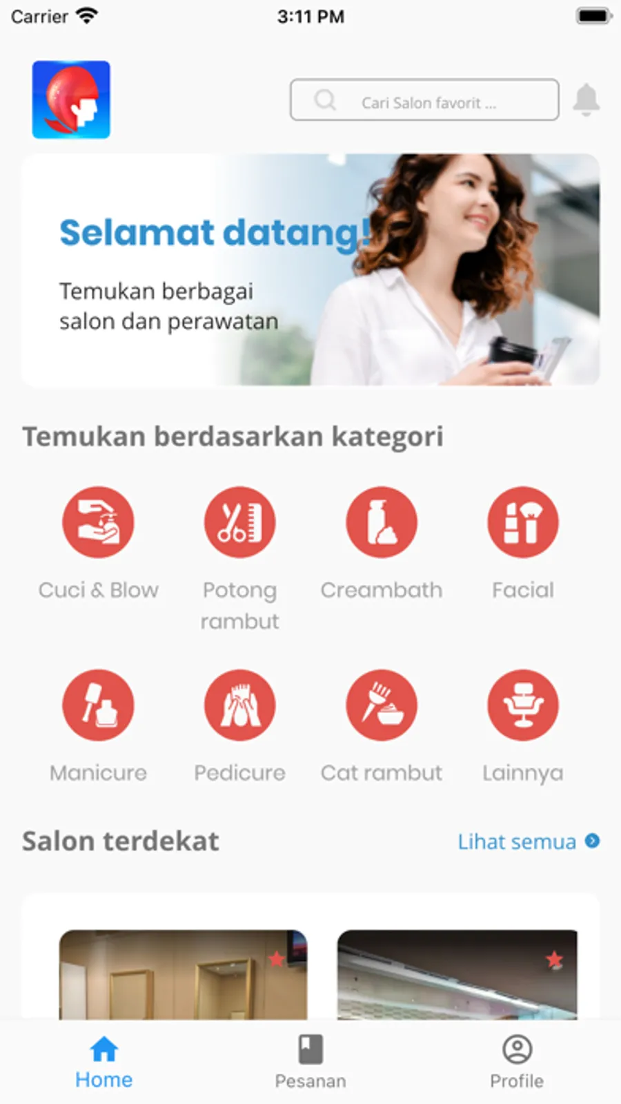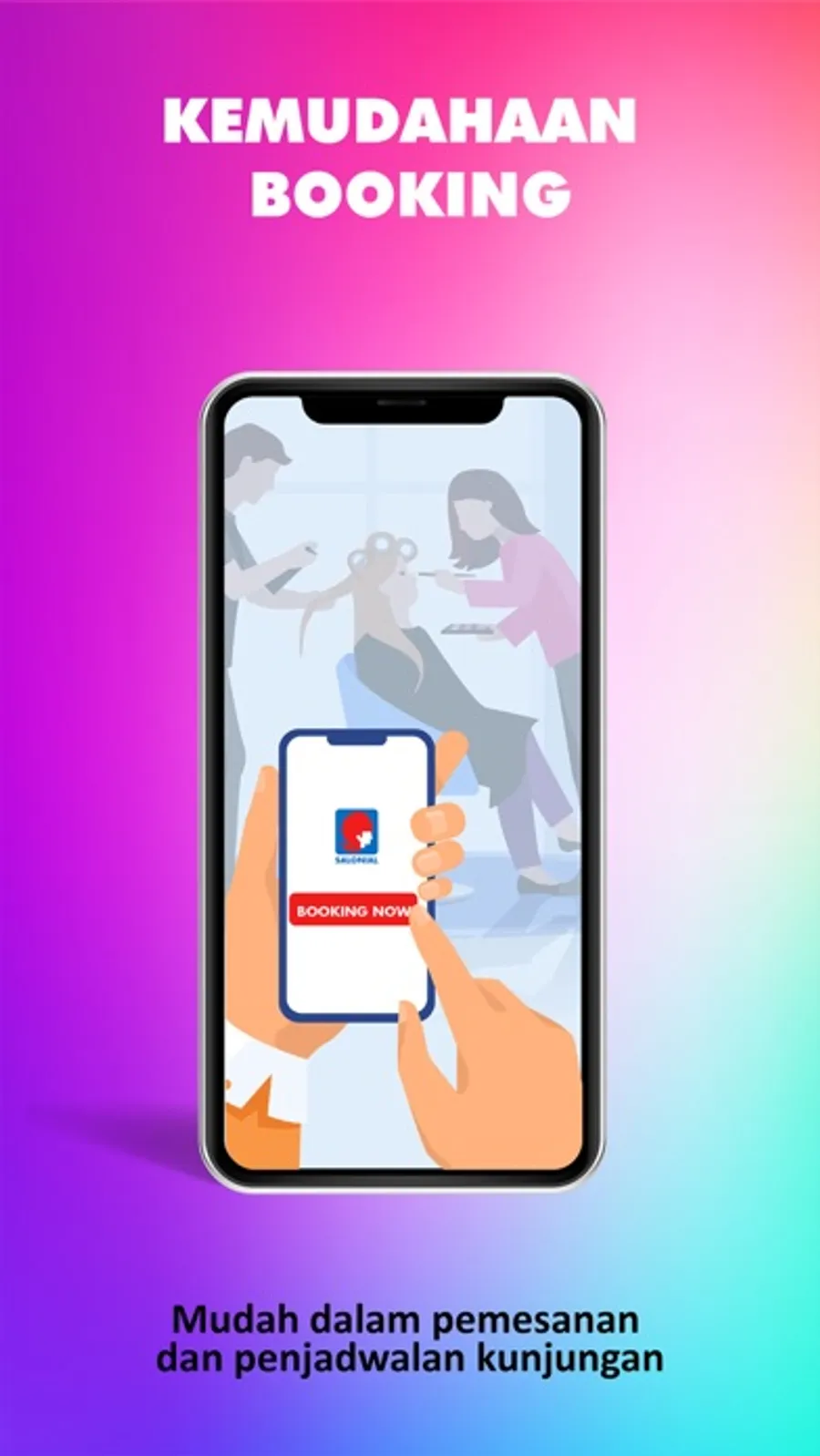 Dapatkan segala kemudahan hanya dalam genggaman. Bisa booking segala jenis pelayanan salon untuk pria dan wanita, seperti potong rambut, cat rambut, creambath, body spa, manicure, pedicure dan lain sebagainya.