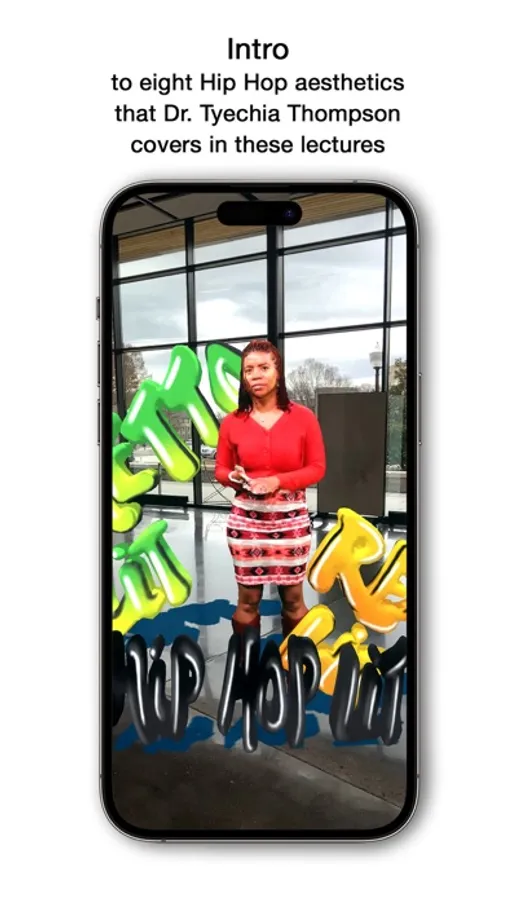 This AR app contains introductory lectures from the course "Black American Literature," taught by a digital hologram of Dr. Tyechia Thompson, an assistant professor in the Department of English at Virginia Tech.