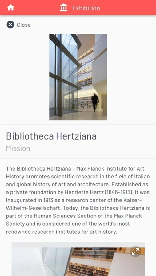 The Bibliotheca Hertziana – Max Planck Institute for Art History promotes scientific research in the field of Italian and global history of art and architecture. Established as a private foundation by Henriette Hertz (1846–1913), it was inaugurated in 1913 as a research center of the Kaiser-Wilhelm-Gesellschaft. Today, the Bibliotheca Hertziana is part of the Human Sciences Section of the Max Planck Society and is considered one of the world's most renowned research institutes for art history.