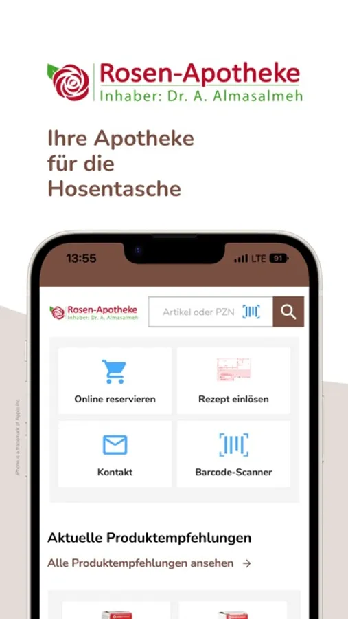 Wir bieten Ihnen über die App unser gesamtes Sortiment. Nicht sofort verfügbare Produkte bestellen wir für Sie und machen Sie in der Regel bis zum nächsten Werktag abholbereit. Gerne liefern wir Ihnen Ihre Bestellung per Botendienst direkt nach Hause.