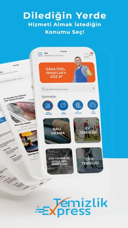 Temizlik Express ; Halı yıkama , oto yıkama , ev temizleme , kuru temizleme gibi 12 farklı kategoride hizmet veren binlerce firmayı tek bir uygulama altında toplayarak , daha hızlı bir şekilde ve kolaylıkla ulaşılmasını sağlayarak , yorumları değerlendirerek , fiyat analizi yaparak , en popüler veya konumunuza en yakın firmaları listeleyerek güvenilir bir şekilde hizmet alınmasına yardımcı olur ve hayatınızı kolaylaştırır .
