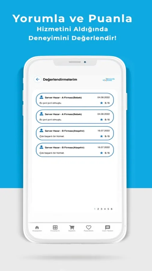 Uygulamaya giriş yaparak , mevcut konumunuzu belirterek , istediğiniz hizmet alanına tıklayıp , sizin için en uygun firmayı seçerek , istediğiniz zaman diliminde anında hizmet alabilirsiniz . Alınan hizmetin sipariş durumunu ve takibini yapabilir , istediğiniz notu bırakabilir , indirim ve kampanyalardan yararlanabilir ve hizmet sonrası siparişi değerlendirebilirsiniz . Temizlik hiç bu kadar kolay olmamıştı.