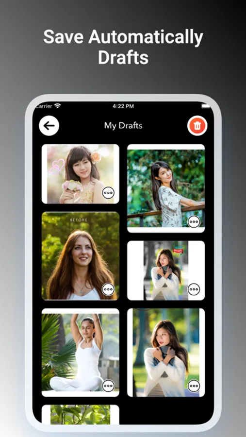 Touch, zoom in or zoom out and move the images to have the desired size, so that it can be fixed in the frames or some subjects in the given frames.