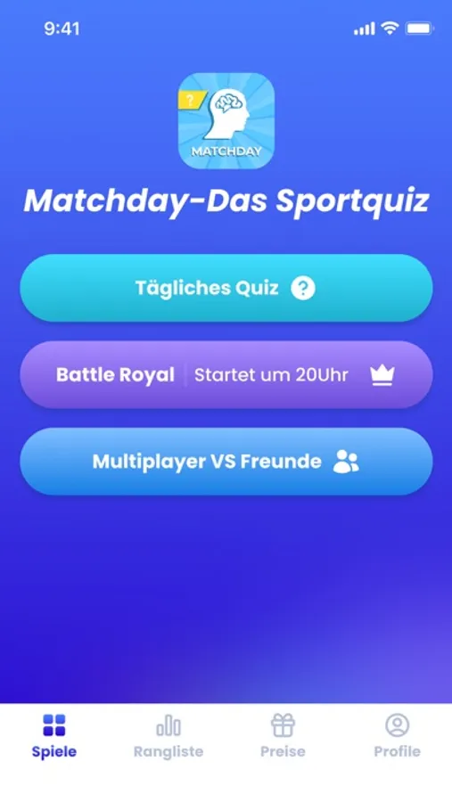 Zeige allen, dass du ein echter Sportexperte ist, belohne dich selbst mit deinem Sportwissen! Matchday ist das ultimative Sportquiz, bei dem du echte Preise abräumen kannst! Ob alleine, im Battle Royal, oder im Multiplayer-Modus gegen Freunde, Matchday bietet dir alles, was du als Sportfan brauchst!