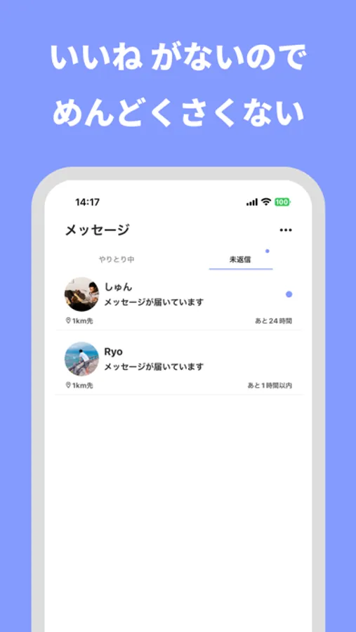 ◆ 「いいね」の仕組みはなし。すぐにメッセージ