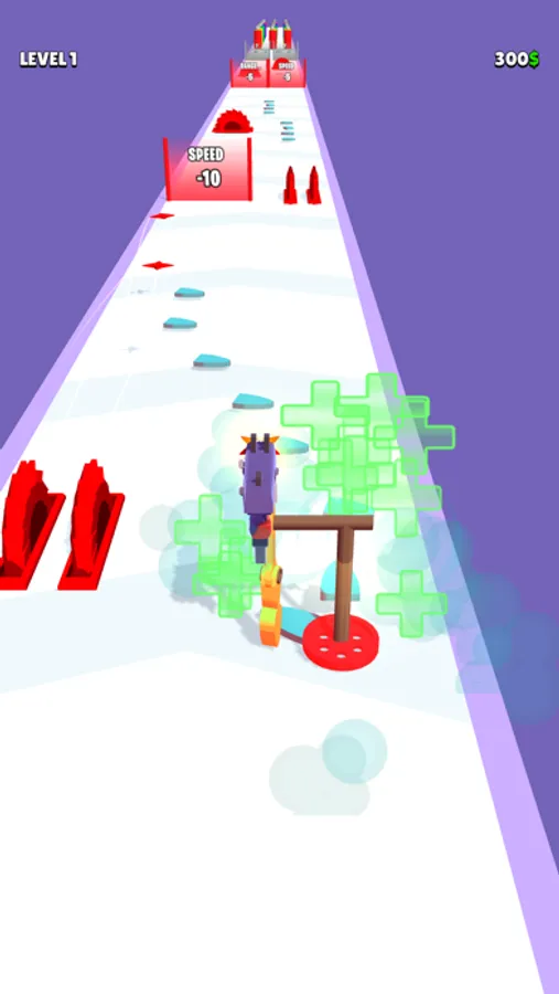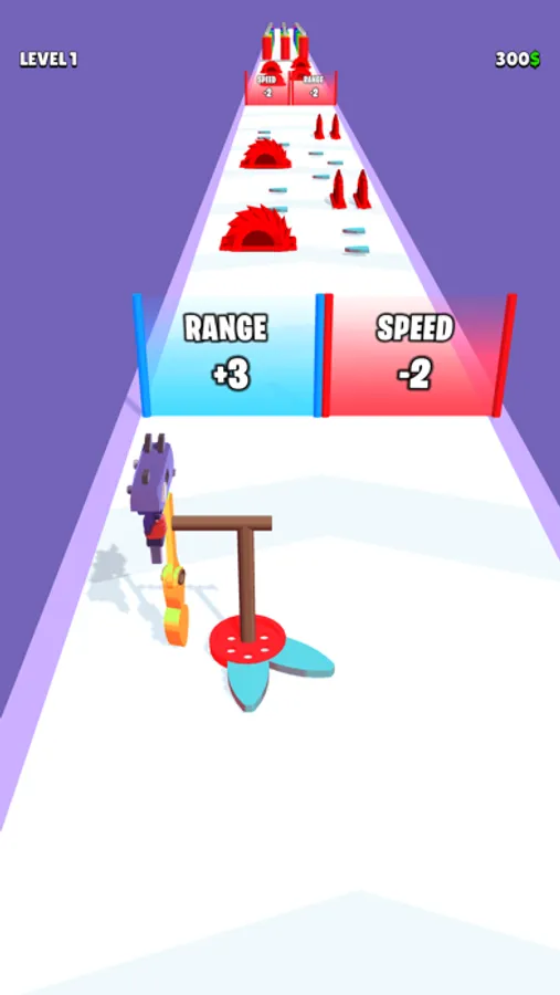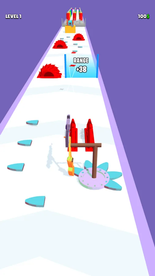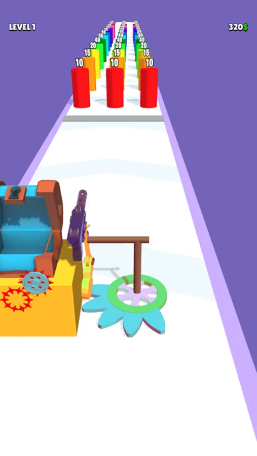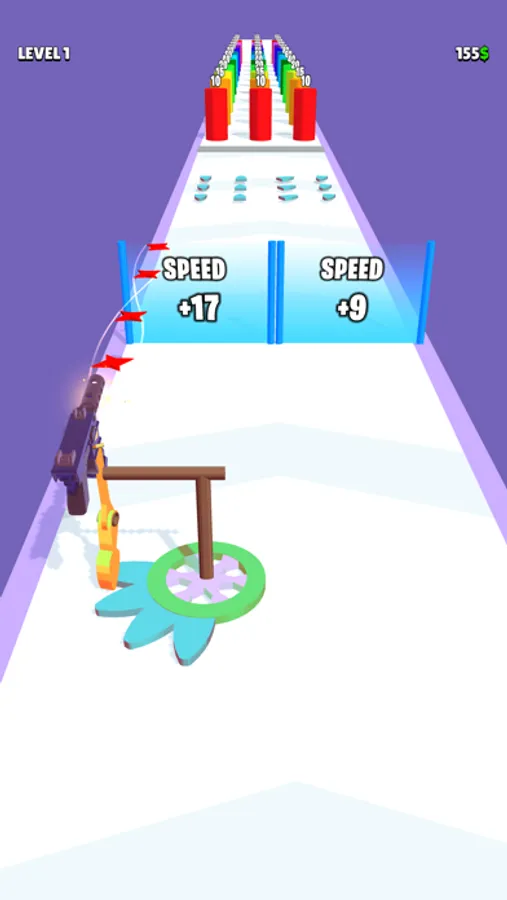 Collect gear parts to upgrade your mechanism. Once you complete a tier, you can use the one evolved to shoot more powerful and fast. Try to avoid obstacles and choose the best fitting gate for you.