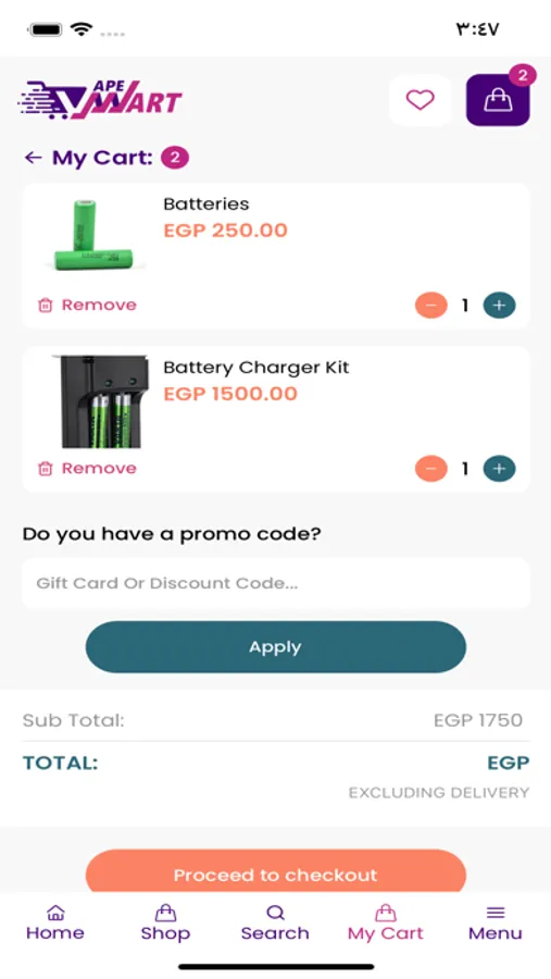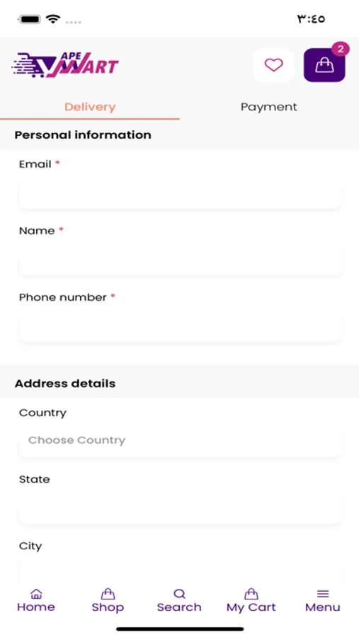 • When the customer adds all his wanted products to the cart and proceed to checkout, he/she is obligated to fill the details of 1. First name. 2. Second name. 3. Address. 4. No. of home. 5. Floor. 6.Mobile number. 7. Payment method (cash/ Vodafone cash)