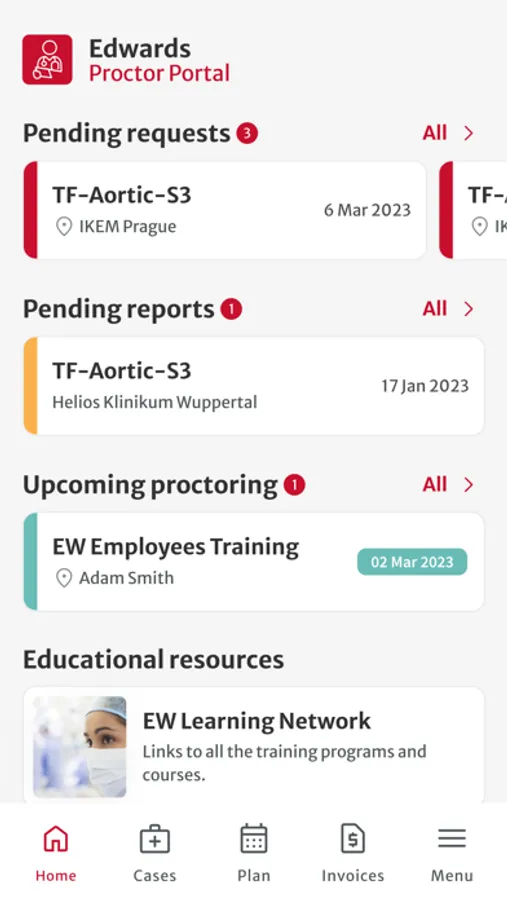 Stay informed about your new proctoring requests, review and respond the requests easily, share your availability, sync your proctoring activities into your own calendar, report your cases and finally submit the invoice to Edwards.