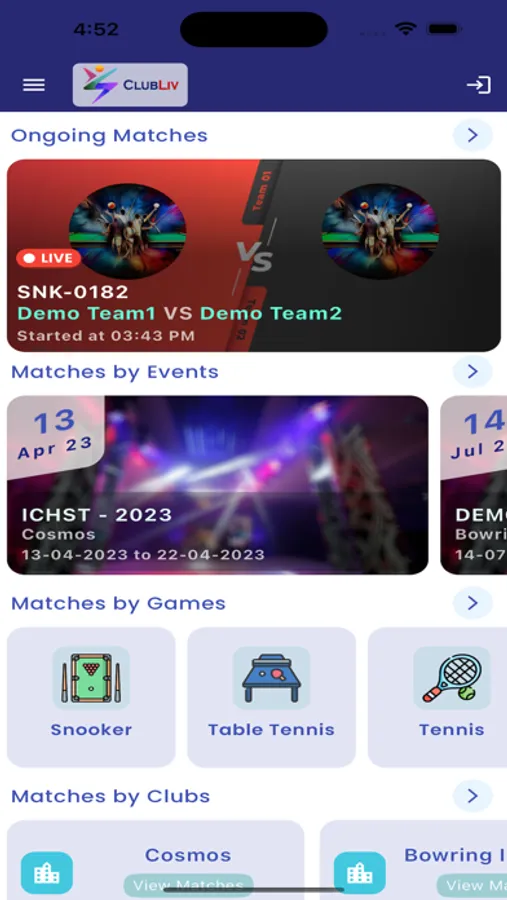 ClubLiv is a Live Stream Club Activities app is a comprehensive and user-friendly platform designed to provide club members and guests with convenient access to live streams of various games and tournaments. Whether you are a fan of snooker, table tennis, tennis, badminton, or other sports, this app has got you covered. The app is designed to make club activities more accessible, more engaging, and more convenient for all users.