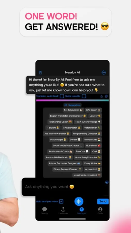 Unlock a whole new world of social interaction with Nearby AI - the app that connects you with people and places like never before! With four incredible features, Nearby AI is the ultimate tool for exploring, engaging, and discovering new experiences: